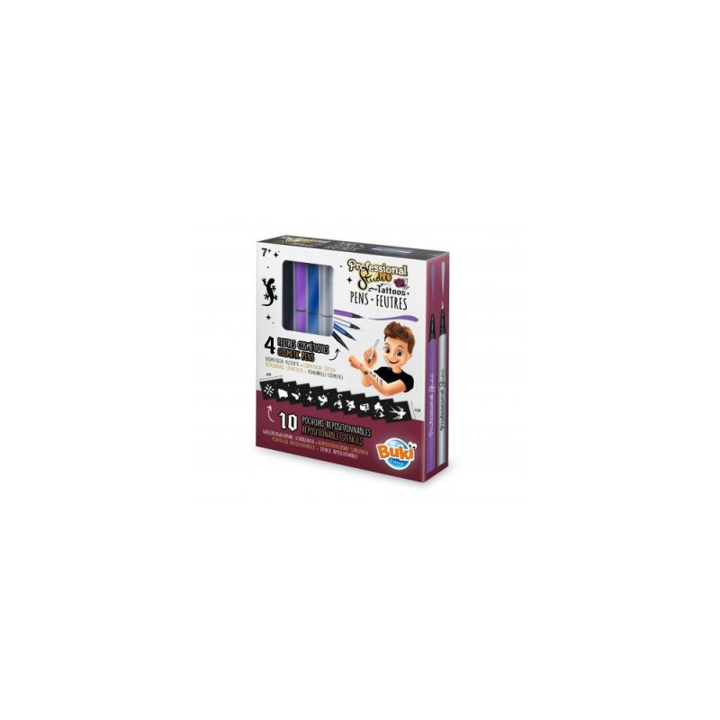 Included: 4 tattoo pens and 10 repositionable stencils and 1 instruction sheet with colour illustrations.