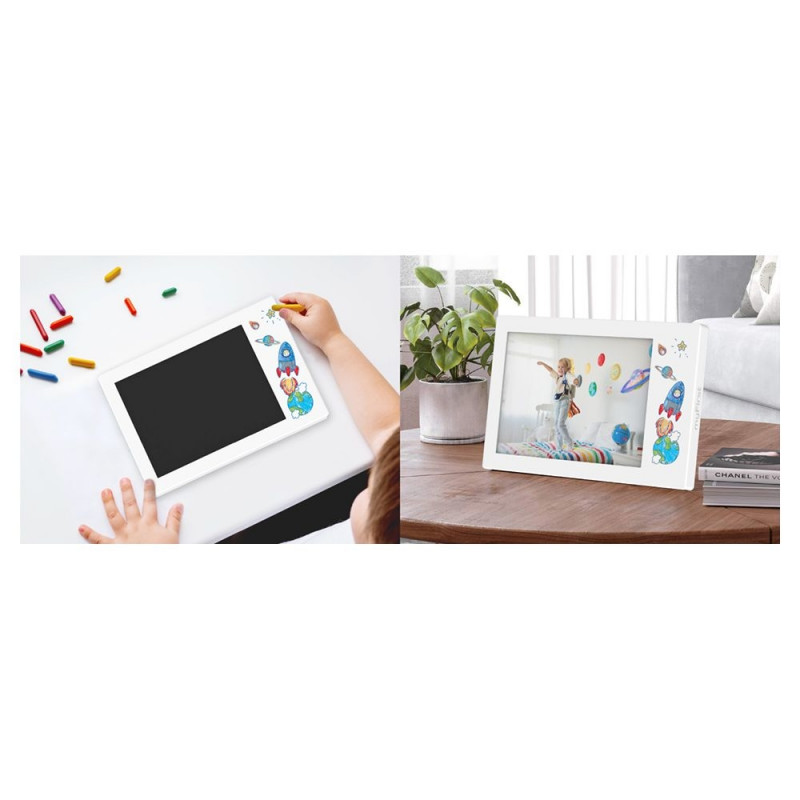 The MyFirst Frame Doodle offers a fun and educational experience. Whether you want to enjoy photos or need a handy alarm clock by your bed, this digital frame is versatile. Thanks to the smart motion sensor, it becomes a cheerful and responsive device. Its lightweight design makes the MyFirst Frame Doodle easy to carry and use anywhere.
