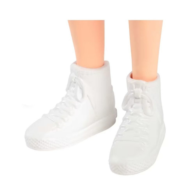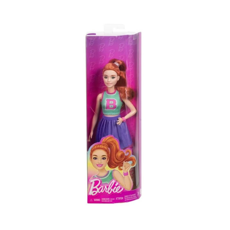 - This petite Barbie doll wears her red hair in a bouncy side pony! Her look features fun details that make her personality pop, like a pink watch and white sneakers.