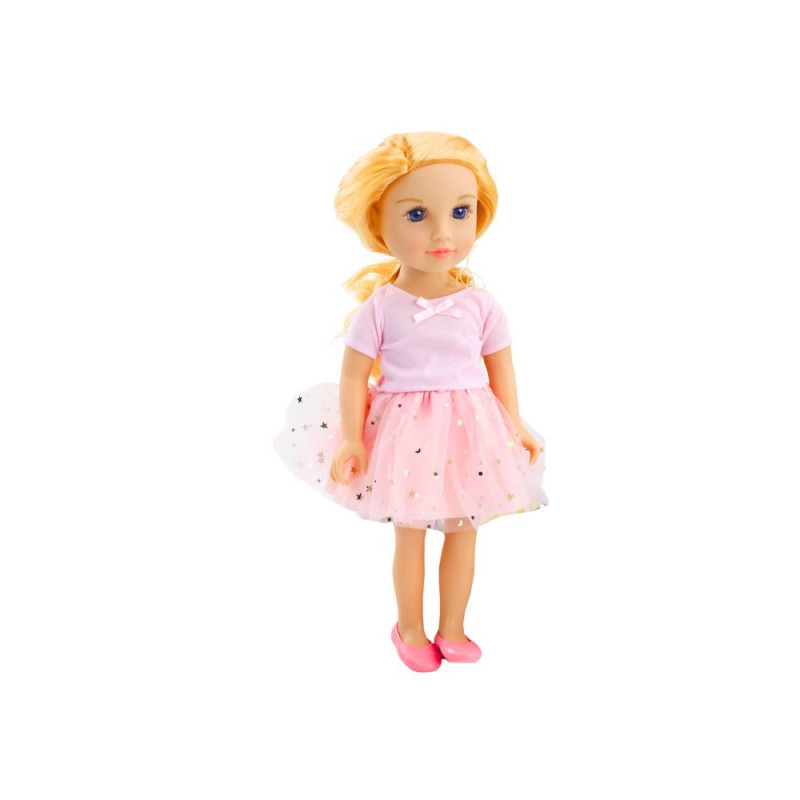Urocza sukienka z tiulem zdobionym złotymi gwiazdkami nadaje lalce bajkowego wyglądu, sprawiając, że jest gotowa na każdą wyjątkową okazję. Dzięki dbałości o detale i wysokiej jakości materiałom, ubranie jest miłe w dotyku, łatwe do zdejmowania i zakładania, co ułatwia zabawę i rozwija koordynację ruchową dziecka.