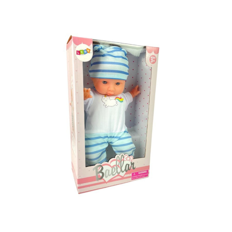 Śliczna lalka, dopracowana z każdym szczegółem, rysy twarzy sprawiają, że wygląda bardzo realistycznie, jak mały bobas. Urocze ubranko ma kolor biało- niebieski w paski. Prezentowana lala wykonana jest z atestowanych materiałów wysokiej jakości, świadczących o bezpieczeństwie płynącym z jej użytkowania, a także długiej żywotności zabawki.Na głowie bobasa znajduje się urocza niebieska czapeczka. Całość idealnie pasuje do siebie. Lalka posiada ruchome nóżki, rączki i główkę. Ciało bobasa jest takie miękkie i przyjemne w dotyku.