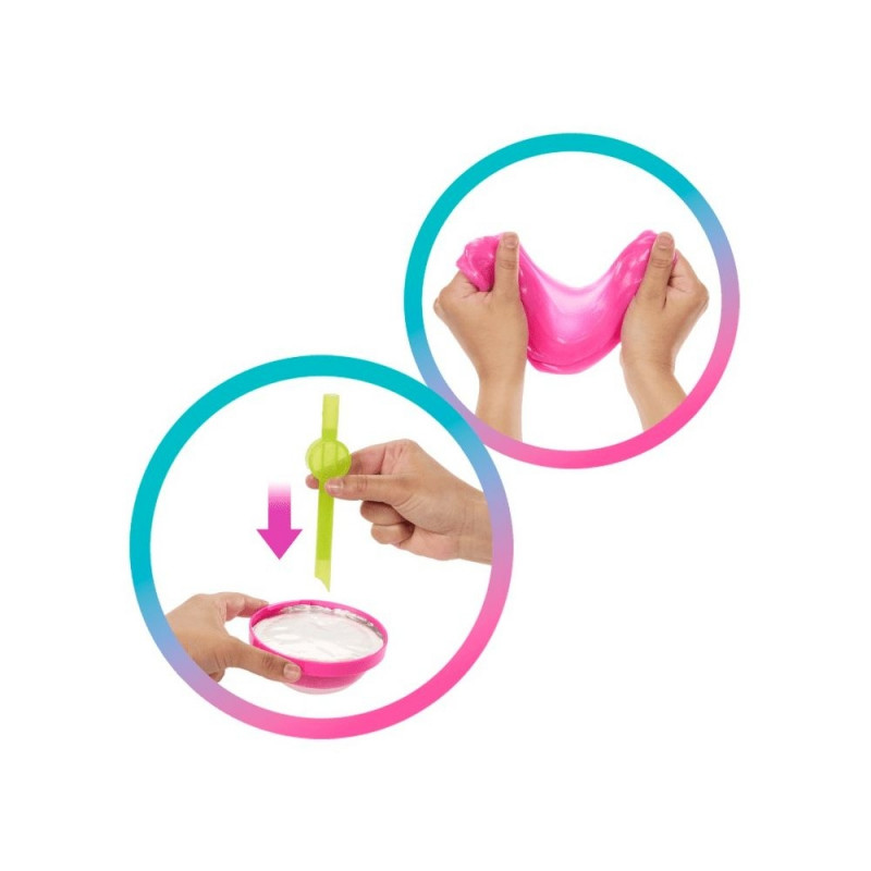 - Odkręć wieczko ze slimem i przebij wierzchnią warstwę słomką, aby pobawić się elastyczną masą.