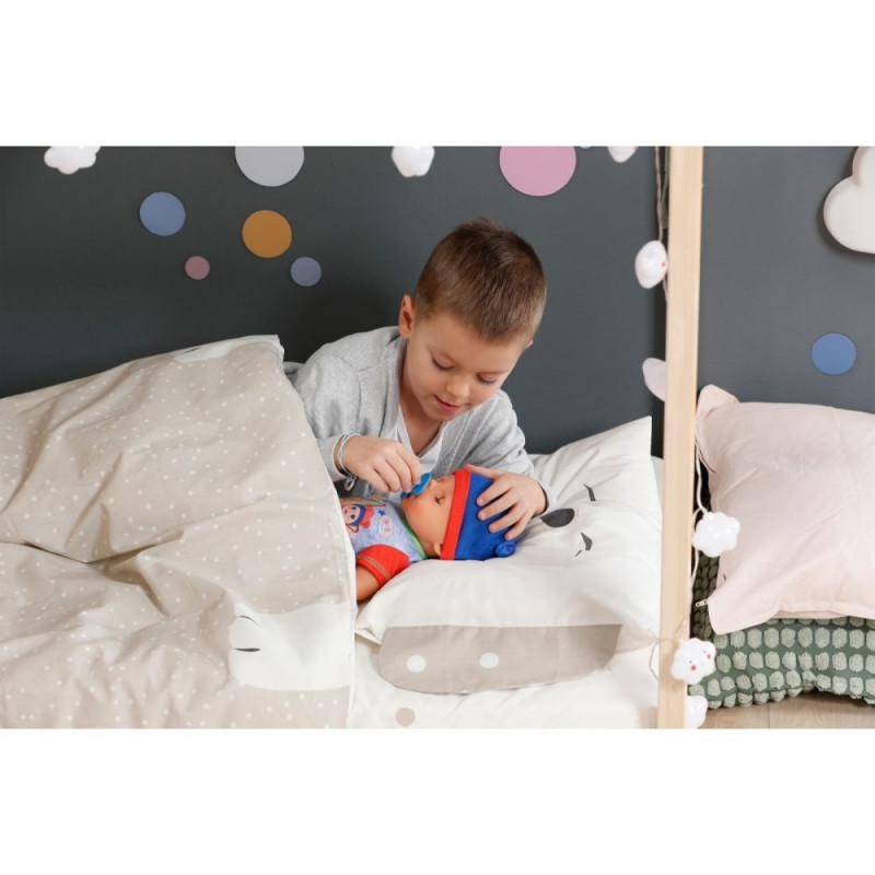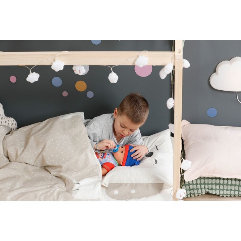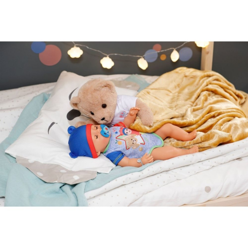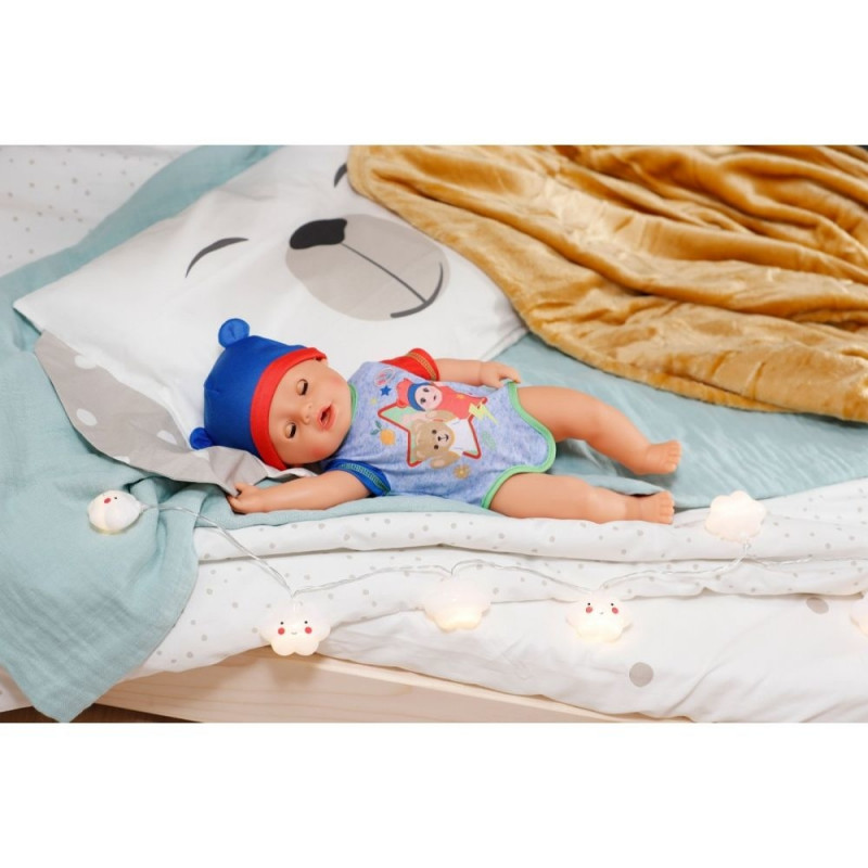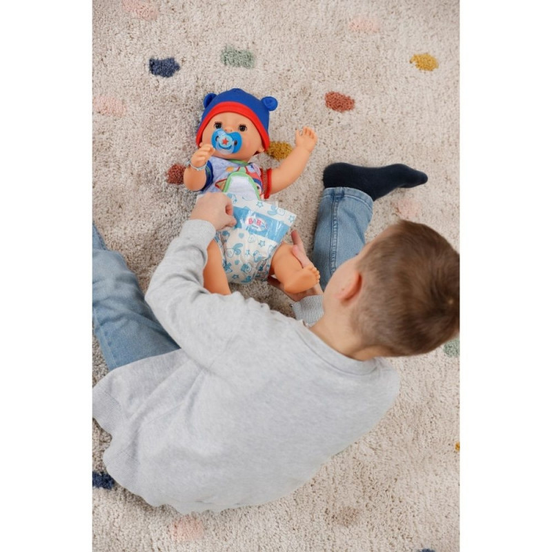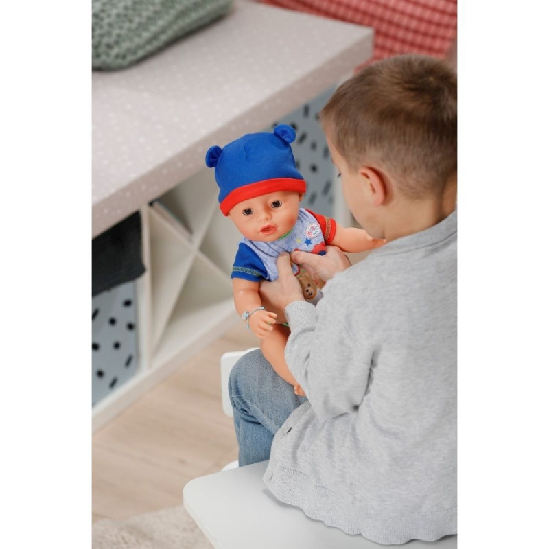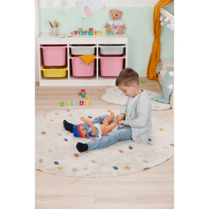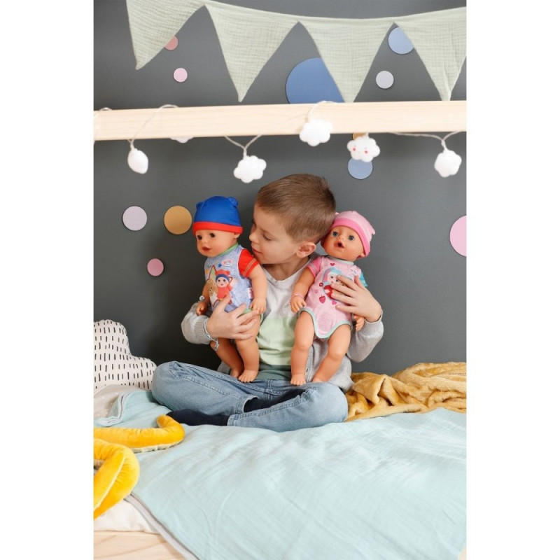 BABY born Jonas 43 cm - bohatera znanego z popularnego animowanego serialu BABY born, który teraz pojawia się w nowym ubranku i z zestawem aż 10 akcesoriów, gwarantujących długie godziny kreatywnej zabawy. Wśród nich znajduje się magiczny talerzyk, na którym po wlaniu wody pojawiają się apetyczne potrawy - to efekt magicznej wody, który sprawia, że zabawa w karmienie staje się jeszcze bardziej realistyczna i ekscytująca. Po posiłku lub piciu z butelki można posadzić Jonasa na nocnik i nacisnąć jego brzuszek, by zrobił siusiu lub kupkę, jak prawdziwe dziecko. Gdy pije wodę, potrafi nawet zapłakać i wymaga czułego przytulenia. Pomaga w tym magiczny smoczek, który po obróceniu o 180 stopni otwiera lub zamyka oczy lalki - a gdy Jonas zostanie położony do snu, sam zamyka oczy również bez smoczka. Lalka jest bardzo elastyczna i nadaje się do kąpieli - schnie szybciej niż kiedykolwiek, a dzięki możliwości wyjęcia jednej nogi czyszczenie jest wyjątkowo proste. W zestawie z Jona sem znajduje się butelka, smoczek, magiczny talerzyk, łyżeczka, jedzenie, nocnik, pieluszka, akt urodzenia oraz dwie bransoletki przyjaźni - jedna dla dziecka, druga dla lalki - symbolizujące wyjątkową więź i wspólne chwile zabawy. BABY born Jonas 43 cm to gwarancja niezawodnej jakości i radości, jaką marka BABY born dostarcza dzieciom już od 1991 roku.