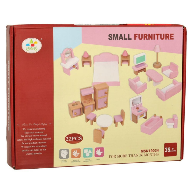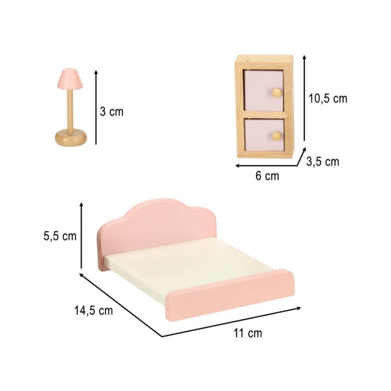 The dollhouse furniture set is the perfect tool for developing role-playing, helping children design their own play space and create stories that support creativity, manual activity and social skills.