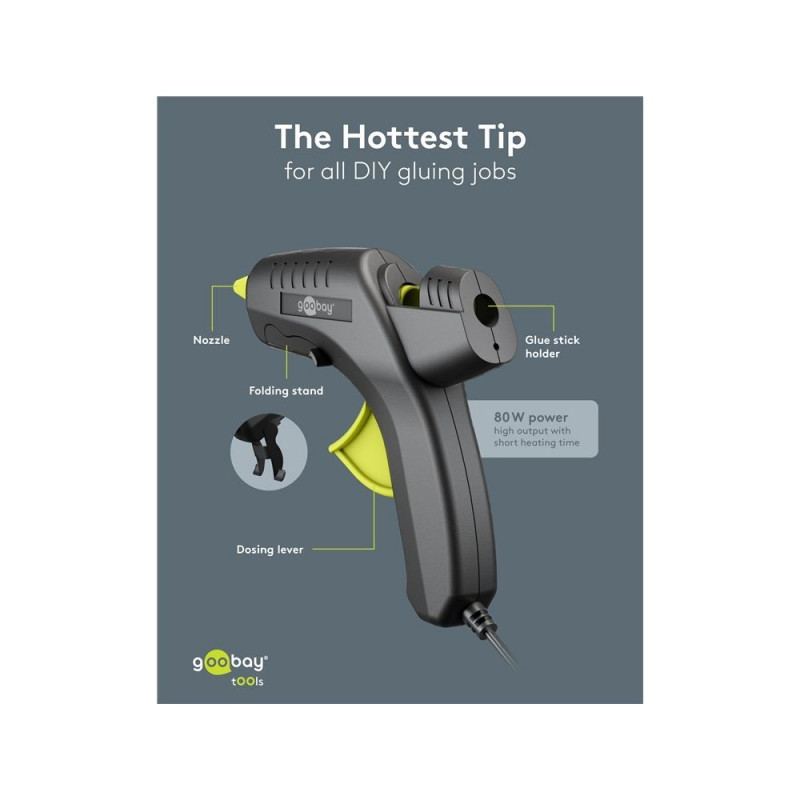 Goobay Tools Hot Glue Gun Premium, 80 W, incl. 2 Glue Sticks