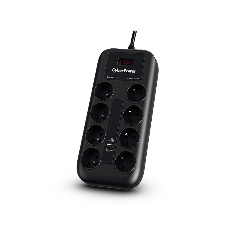 CyberPower Tracer III P0820SUF0-FR surge protector Black 8 AC outlet(s) 200 - 250 V 1.8 m