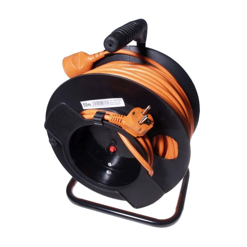 Extension power cord 230V 50m on drum - 250V, max. 16 A/3000W (max. 4,8 A/1100W on drum) - orange cable - 1 outlets out, 1 outlet in - 50m length - wire 3x1,5mm2 - wire (PVC) H05VV-F3G - the cable can be used only unrolled, the wound cable on thWarning: Last items in stock!