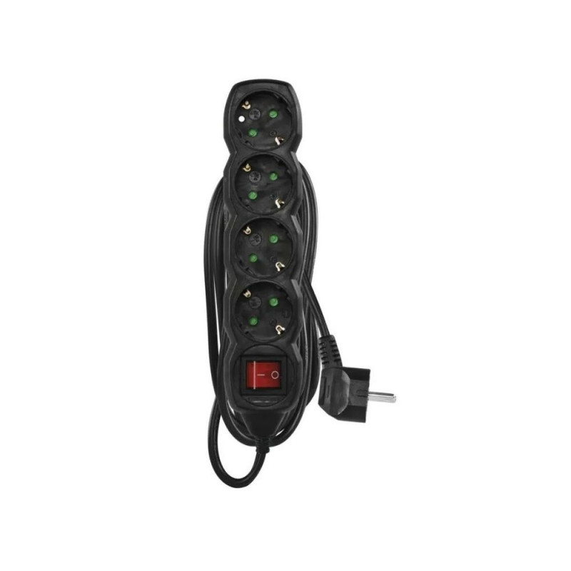 Power Strip SCHUKO with switch – 4 sockets, 3.0m, black, 1,5mm²