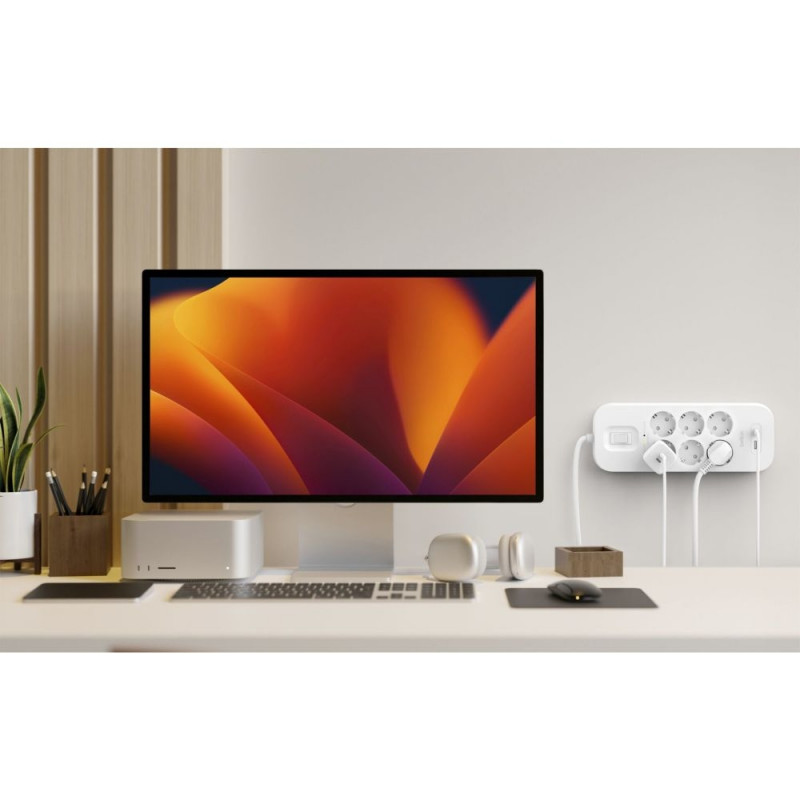 - Six power outlets and one USB-C and one USB-A port provide connectivity for many devices