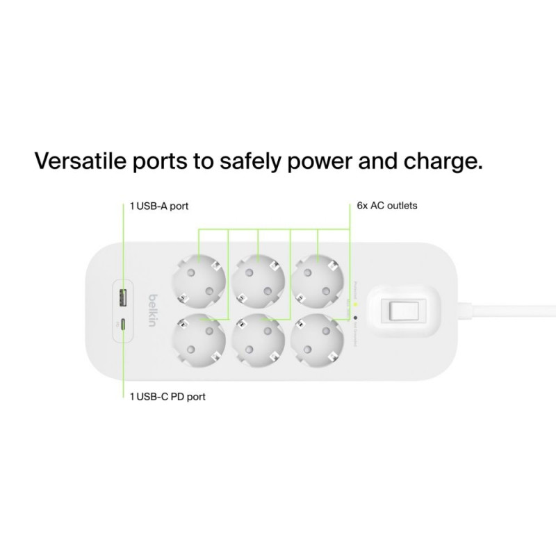 Belkin Surge Socket 6-fold, USB-A+C, 650J.SRB002VF2M