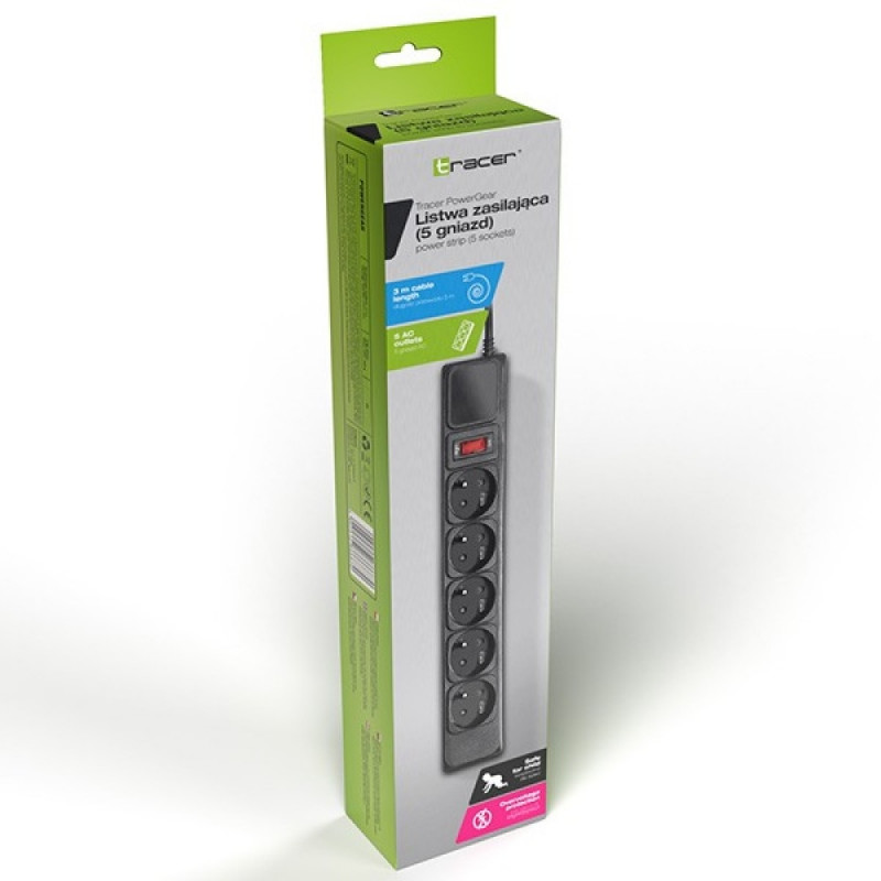 TRACER PowerGear 3.0 m Black power strip (5 sockets)