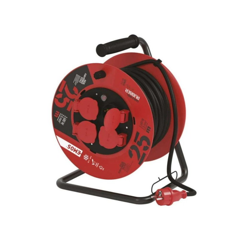Rubber Extension Cord Reel – 4 sockets, 25m, 2.5mm² SCHUKO