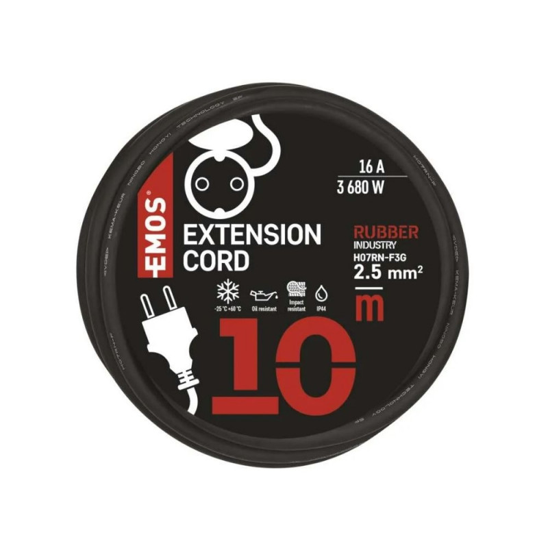 Current Extension cable (rubber) 10m, 3x2,5mm2, SCHUKO
