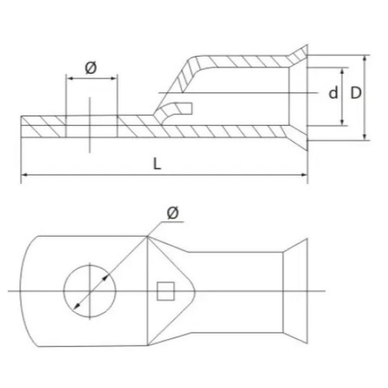 Made from pure electrolytic copper. Surface electro tin plated. Suitable for low voltage cables. With stud hole, applicable bolts. Incorporate inspection hole to check the correct cable. Cable lugs are fully annealed to guarantee optimal ductility.Warning: Last items in stock!