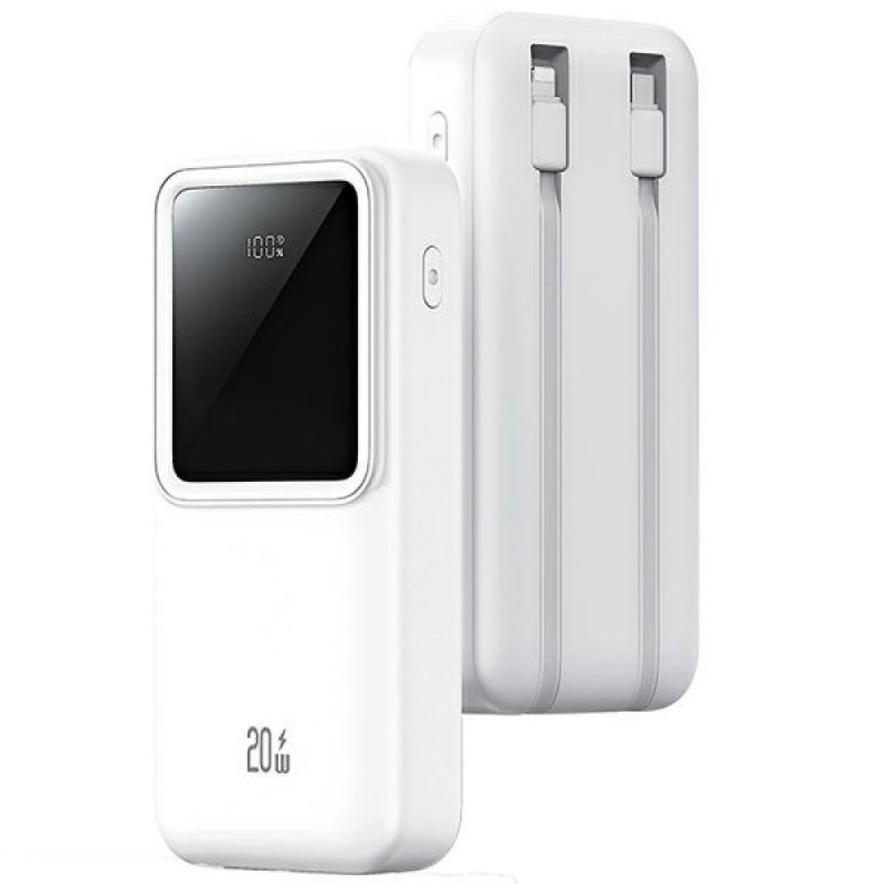 USAMS Powerbank with built-in cablesUSB-C+Lightning 30000 mAh 20W PD+Qc 3.0 Fast Charge X-chel Seri
