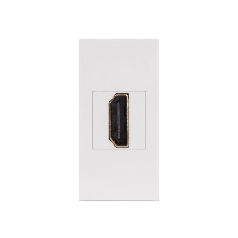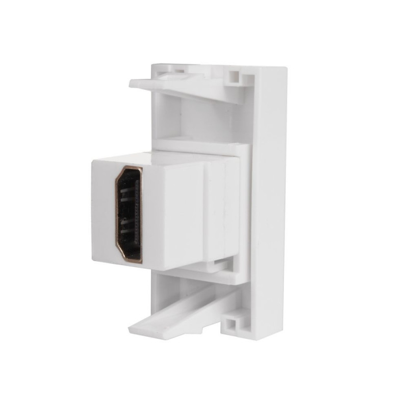 Wysokiej jakości ścienne gniazdo HDMI. Moduł gniazda można zamontować w szklanych ramkach dostępnych w naszych ofertach (jeden moduł zajmuje pół slotu ramki).