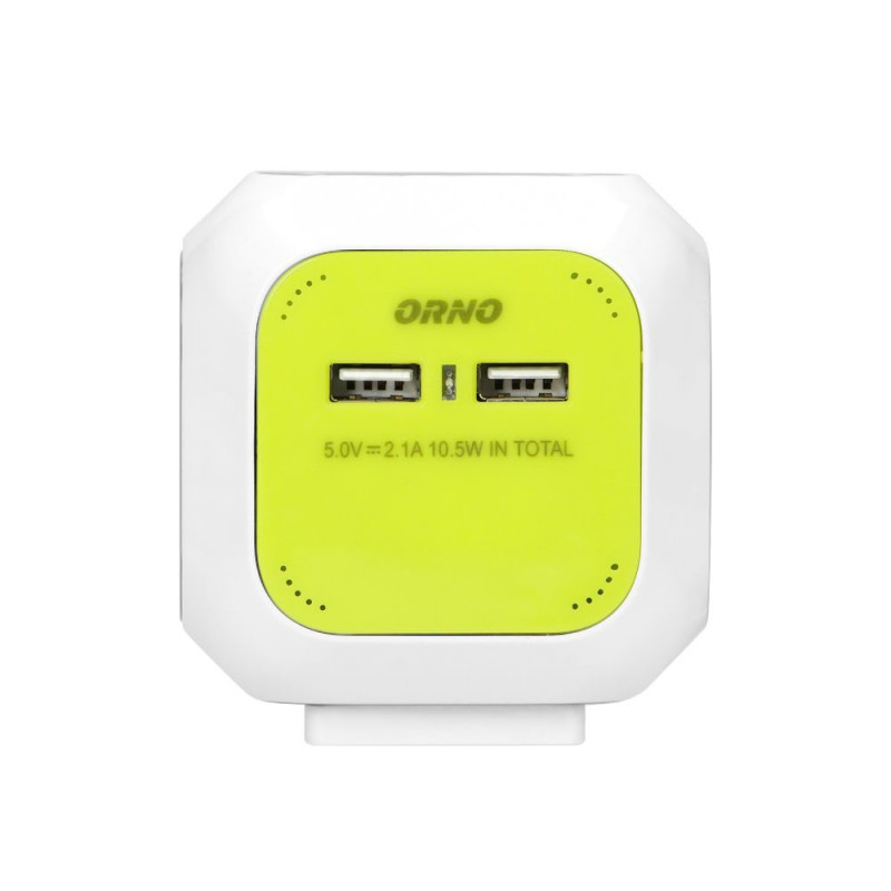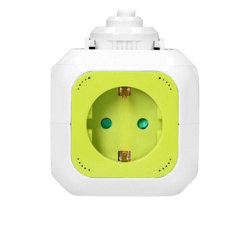 Przedłużacz Kostka 4-krotny(Schuko) z ładowarką 2xUSB 1,4m limonkowy