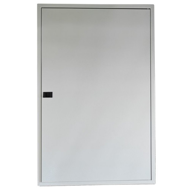 Features: The metal distribution box is intended for MCB installation in residential or industrial premises. It can assemble 24 contacts of breakers each row, the frame with knock-outs on all sides allows you to neatly hide the wires. Safety class IP54 (resistance to moisture and dust). The package includes box body, door and lock system, DIN rails and front frame with cutouts. Body surface: epoxy polyester powder coating textured finish, color RAL 7035 - light gray.