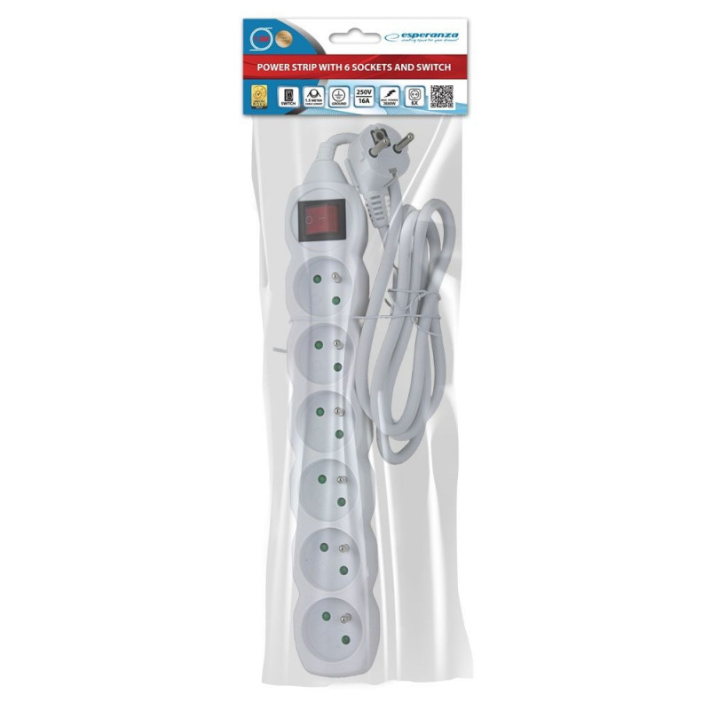 ELK217W Esperanza listwa zasilająca 6 gn. wł. 1.5m biała