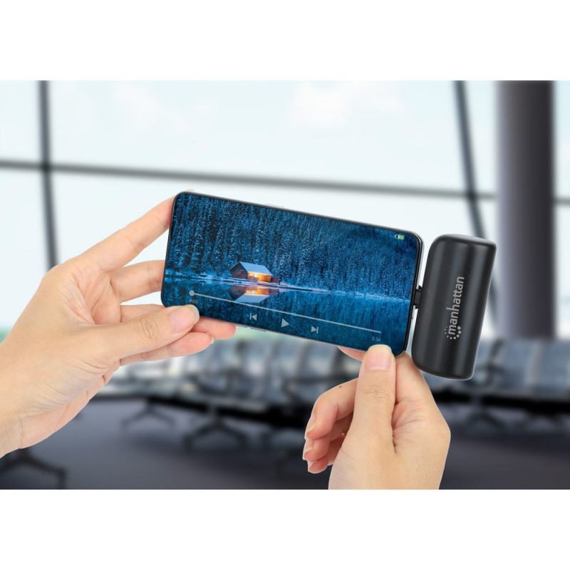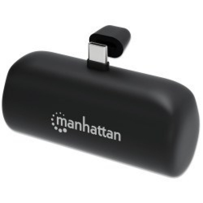 Manhattan Power Bank with integrated USB-C plug, 5000 mAh, Up to 20W output, Kickstand for Use as Ch