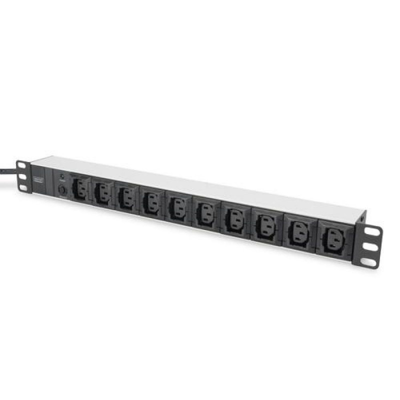 Digitus aluminum outlet strip, 10 outlets, 2 m supply IEC C14 plug