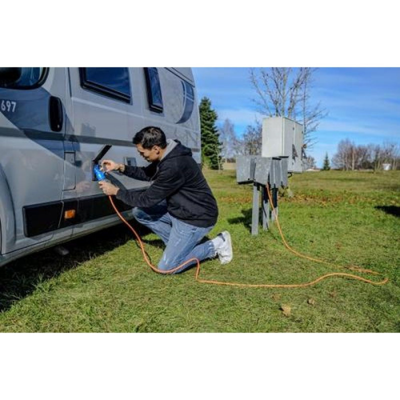 The caravan extension cable IP44 in the colour orange and 25m cable impresses with its quality and safety in all areas. Thanks to the special rubber cable this is ideal for camping and permanent outdoor use. In addition, the coupling is equipped withWarning: Last items in stock!