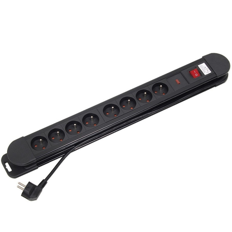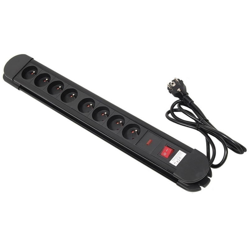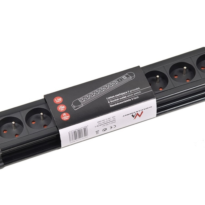 Maclean, power strip dedicated for users wanting to secure their devices from energy surges. It has eight power sockets with a grounding pin and protection against putting fingers or items inside. Special cutouts and hole allows mounting on the wall.