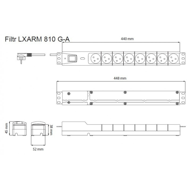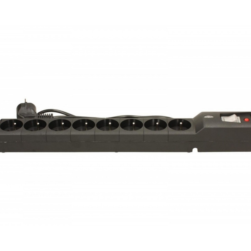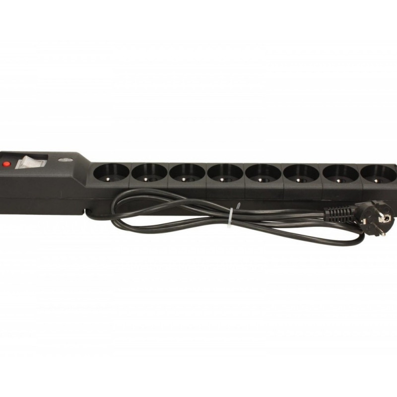 Power strips for cabinets 19 "control system state protection, resettable fuse and a new system of conducting wire in 4 directions. Strip has a rate of correct operation of the protective thermal fuses protection varistors. Safe, tested housing made of high impact nylon. Resettable Fuse protection device against overload. Protection against accidental switching strips.