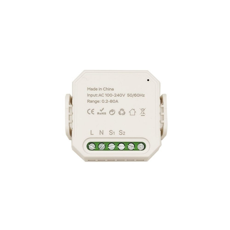 Technical specifications:Number of channels: 1.Measurement current: 0.2–80 A.Operating voltage: 100–240V AC.Frequency: 50/60 Hz.Energy measurement accuracy: ±2%.Wi-Fi frequency: 2.4 GHz.Wi-Fi standards: 802.11b/g/n.App: Tuya Smart / Smart Life (Android, iOS).Works with Amazon Alexa & Google Assistant.Reset button: yes.Indicator light: yes.Operating temperature: -10°C to +55°C.CT measurement aperture diameter: 10.5 mm.CT cable length: 0.7 m.Dimensions: 46 x 46 x 21.3 mm.