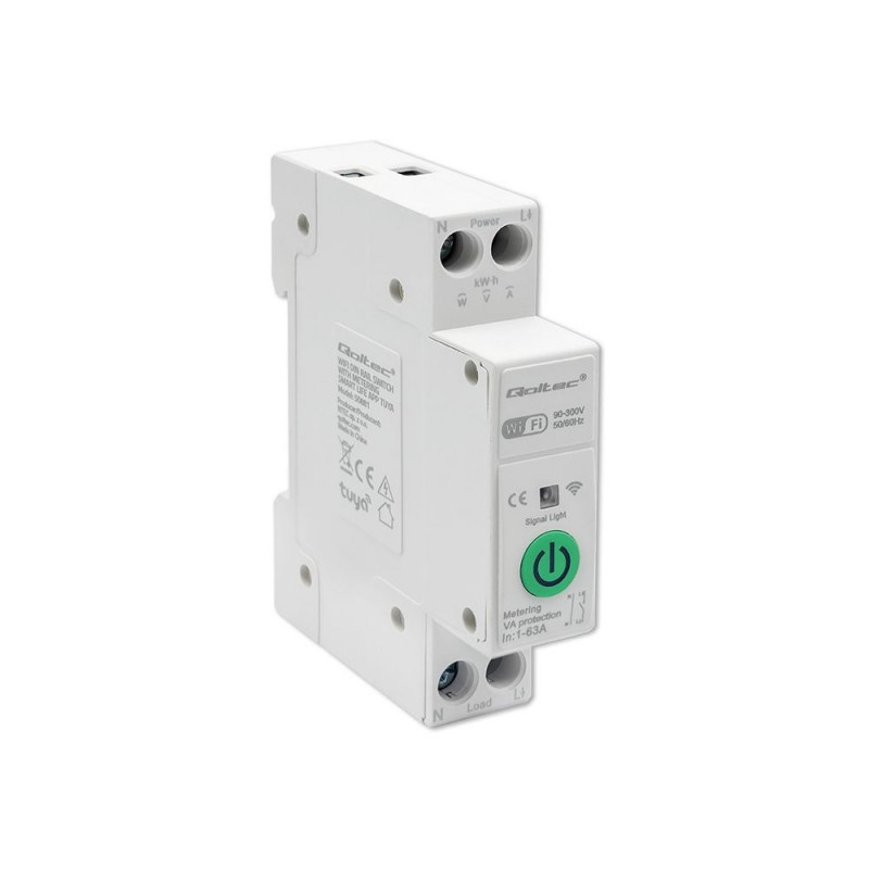 Qoltec 63A Din Rail Relay with Electricity Meter | TUYA | Wi-Fi | SMART LIFE