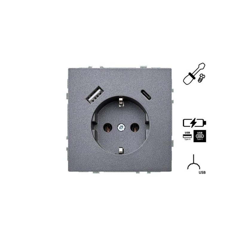 SOCKET+USB A+C IUK-3-01.M/BM MODERN BL