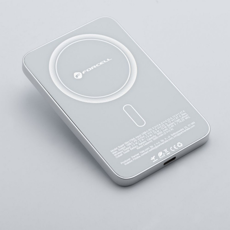 Powerbank compatible with MagSafe Forcell F-Energy SuperSlim F5K8 QC4.0 PD3.0 15W 5000 mAh white