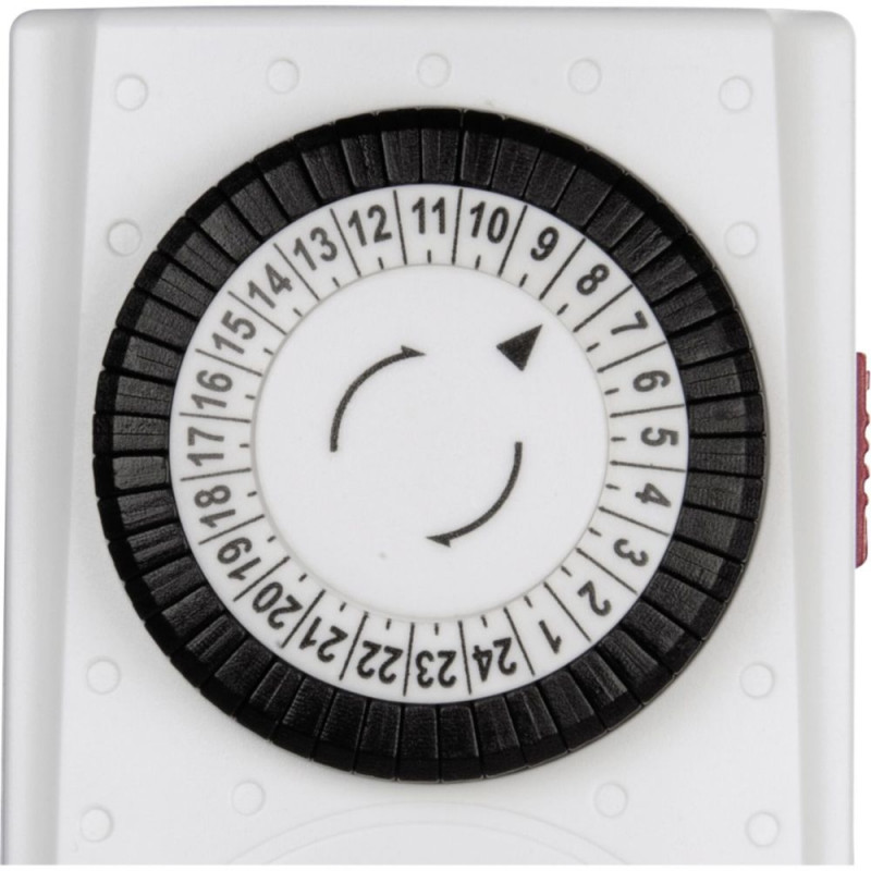 - einfache und schnelle Einstellung von Uhrzeit und Tagesprogramm über Zeitwahlscheibe und Zeit-Reiter
