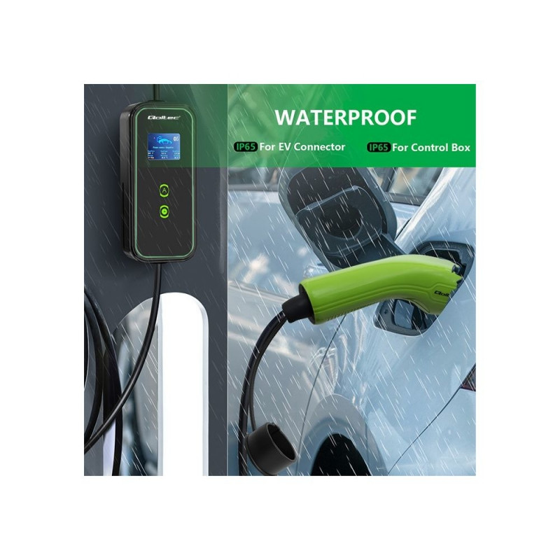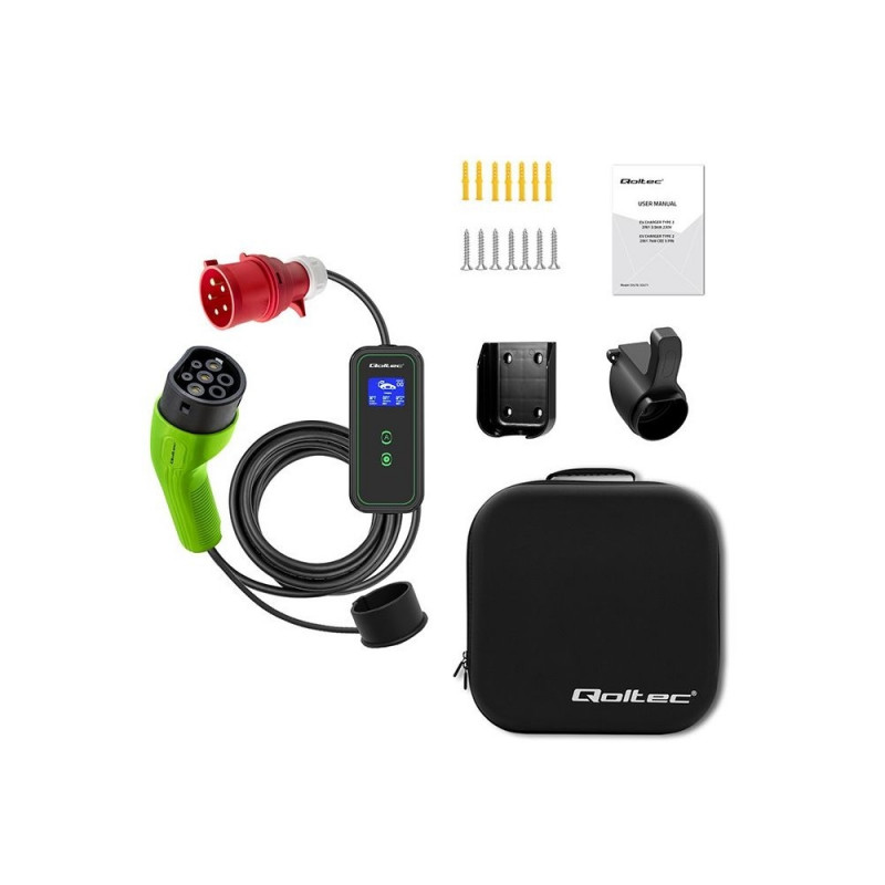 The charger has a type 2 connector, which is now an official European Union standard and charges electric cars equipped with a suitable charging socket. The Type 2 connector is 7 contacts, of which 3 contacts or 5 are for charging and 2 are for communication between the station and the car. Compatible with most electric cars sold in Europe. The Qoltec brand charger supports four current modes of 8A, 10A, 13A and 16A. It is worth mentioning that the Type 2 connector is suitable for electric vehicles with a charging power of more than 3kW.