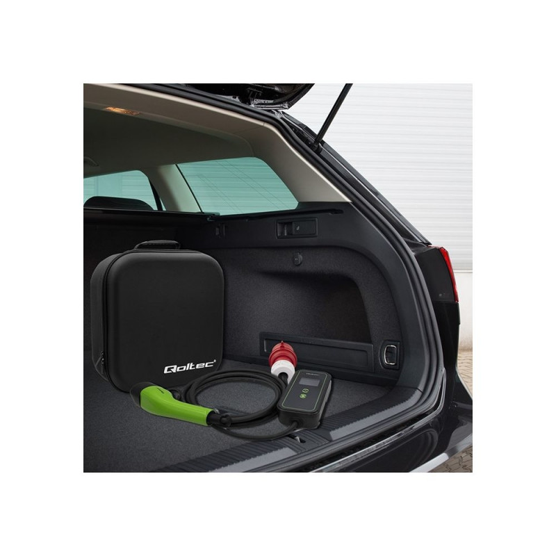Don't let the low charge of your battery prevent you from using your electric vehicle. With the Qoltec mobile charger, you can charge your car's battery in just a few hours. The portable charger is perfect for longer holiday trips, for example, thanks to its compact design, it takes up very little space, without any problem you can transport it directly in the boot or in the bag included. The charger is powered from a standard 5-pin power socket, and we charge the car using a type 2 connector.