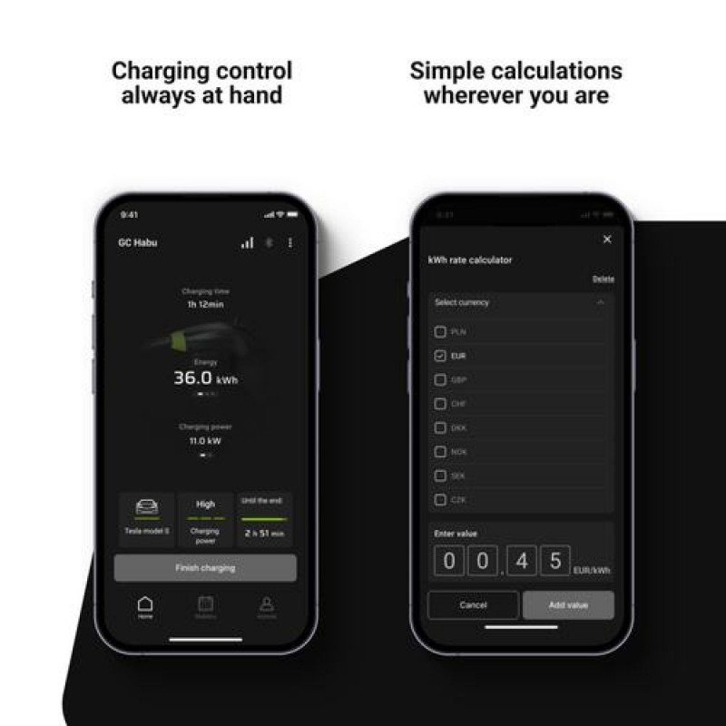 <b>Green Cell Habu EV Mobile Charger 11 kW 7 m Type 2 to CEE 16 A for Charging Electric Vehicles EV PHEV 2in1 Wallbox with GC App</b><br><br><b>Enjoy charging.</b><br><b>Everywhere.</b><br>Habu is a mobile electric vehicle charger that sets a whole new standard. It is definitely the only charger you need and the only charger you will ever want to use.<br><br><b>Intuitive operation</b><br>With just one button, you'll adjust the power, finish the charging process and select any other function in the menu.<br><br><b>You see everything at a glance</b><br>Check charging power, how long the current session lasts and how much energy has been supplied. Without opening the app.<br><br><b>Looks like a cable, but it's a charger</b><br>Forget about the bulky module in the middle. We fit all the electronics into the plugs.<br><br><b>Take mobility to the next level.</b><br>Habu, with its 11 kW of power, will replace the big wall charger in the garage, in addition to charging your car on the road, at home or wherever you find a power source. No installation required.<br>You simply plug in and charge.<br><br><b>It’s not another boring charger</b><br>With one button, you can open the charge port flap in your Tesla or unlock the connector when charging is over. No need to tap the screen on the dashboard inside the car. It's a real convenience.<br><br>And in addition, the connector has a built-in LED that you can use as a flashlight. Cool, right?<br><br><b>Control the charging remotely</b><br>You're in charge. In the app, you can remotely change the charging power, start charging, stop charging or specify when it should end.<br><br><b>Stay up to date</b><br>When charging is complete, you will get a notification with a summary of the session or information about the interruption of charging if it occurs due to, for example, a temporary power outage. This way you can react in the right time and not be surprised by a discharged battery.<br><br><b>View statistics</b><br>View and analyze statistics on energy consumption and charging costs over any period of time.<br><br><b>Ready for future level app</b><br>The app will be constantly developed and expanded with more functionalities, including smart charging features.<br><br><b>Outstanding Design</b><br>Small work of art that we created for you<br><br><b>Design, ergonomics, haptics</b><br>- we combined all these matter in such a way as to take your charging experience to a whole new level.<br><br><b>Great power in a small form</b><br>Habu, with its 11 kW of power, will charge almost any vehicle as fast as possible using AC current. Don't waste time, charge quickly, simply and anywhere you want.<br><br><br><b>Examples of compatible models of electric cars and plug-in hybrids</b><br><br>Tesla Model 3 / Model S / Model X / Model Y<br>KIA Soul EV / Niro EV / Sportage PHEV / EV6<br>Hyundai Kona Electric / IONIQ 5 / IONIQ 6<br>Volkswagen ID.3 / ID.4 / ID.4 GTX / ID.5 / ID.5 GTX / ID.Buzz<br>BMW i3 / i3s / i4 / i7 / i8 / iX / iX1 / iX3<br>Audi e-tron / Q4 e-tron / Q8 e-tron / Q8 sportback e-tron<br>Mercedes EQA/EQB/EQC/EQE/EQS/EQV<br>Peugeot e-208 / e-2008 / 308 PHEV / 3008 PHEV<br>Volvo C40 Recharge / XC40 Recharge / XC60 PHEV / EX90<br>Porsche Taycan<br>Jaguar I-Pace<br>Ford Mustang Mach-E<br>Skoda Enyaq iV<br>Nissan Aria / Leaf<br>Renault ZOE / Megane E-Tech<br>Fiat 500e / Abarth 500e<br>Toyota bZ4X<br>Polestar 1 / Polestar 2 / Polestar 3<br>NIO ET5/ET7/ES6/ES7/ES8/EC6/EC7<br><br><b>Highly durable</b><br>- even when driven over<br><br><b>No matter of weather</b><br>- waterproof and dustproof housing.<br><br><b>Resistant to low and high temperatures</b><br><br><b>Safety first</b><br>In a small housing we have fit all the safety features known from large wall-mounted chargers, such as: RCD AC + DC protection to ensure maximum safety of use.<br><br>Habu will not only detect irregularities in the grid, but will also use its screen to inform you of a specific error with detailed instructions what to do.<br><br><br><br>Green Cell EVGC01. Cable colour: Black, Connector 1: Type 2, Connector 2: CEE 16A. Maximum operating power (three-phase): 11 kW, Maximum operating current (three-phase): 16 A, Operating voltage: 400 V. Cable length: 7 m, Weight: 3.15 kg. Quantity per pack: 1 pc(s)