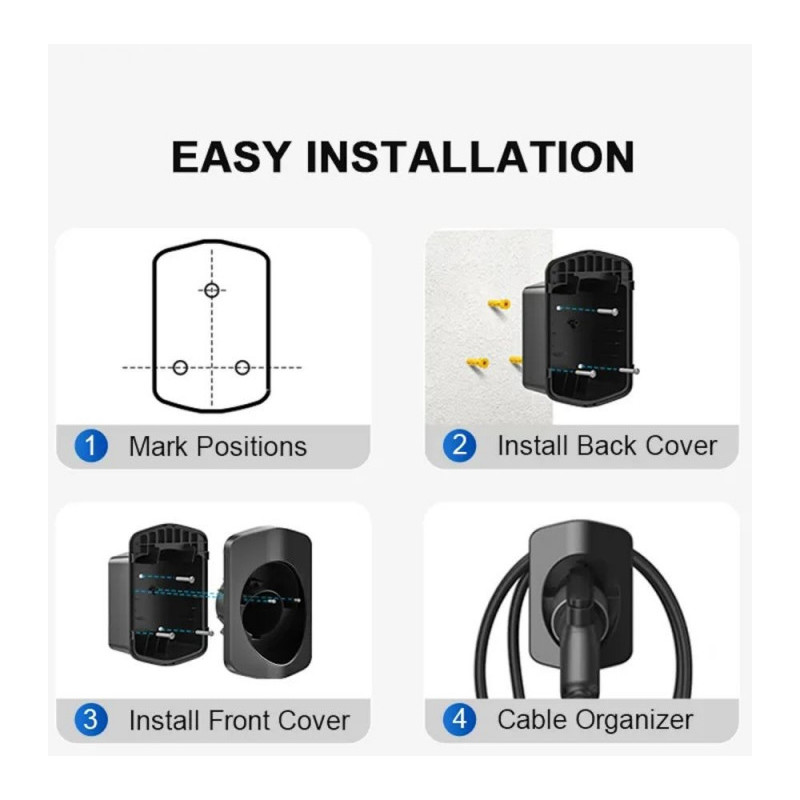 - The kit includes the necessary mounting hardware, allowing for quick and convenient installation in the garage, wall or next to the charging point