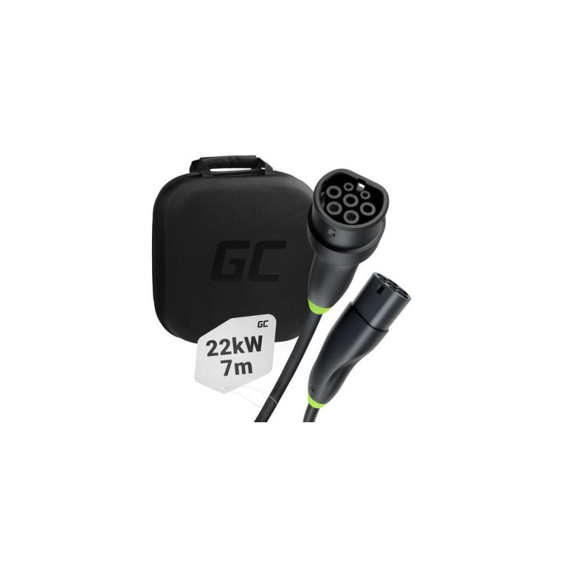 <b>Green Cell Snap Type 2 EV Charging Cable 22 kW 7 m for Tesla Model 3 S X Y, VW ID.3, ID.4, Kia EV6, Hyundai IONIQ 5, Ford Mach-E</b><br><br><b>Snap</b><br><b>Charging made easy</b><br><br>These Type 2 cables are the work of the Green Cell brand engineers and designers. For us, it's not just an ordinary cable for charging EV but a product that we decided to make as ergonomic, durable and safe as possible. We developed it together with electric vehicle users, so we are sure that it is unique in its kind, and the convenience of using it is maximized.<br><br><b>It's a snap to recognize</b><br><b>which plug goes where</b><br><br><b>Compatible with every</b><br><b>European electric vehicle and charging station</b><br><br>Snap cables have Type 2<br>(IEC 62196-2) plugs, which is the standard at whole Europe. It means that they are compatible with every electric / plug-in hybrid vehicle and any charging station you encounter.<br><br><b>Examples of compatible models of electric cars and plug-in hybrids</b><br><br>Tesla Model 3 / Model S / Model X / Model Y<br>KIA EV6 / Niro EV / e-Soul / Sportage PHEV<br>Hyundai Kona Electric / IONIQ 5 / IONIQ 6<br>Volkswagen ID.3 / ID.4 / ID.5 / ID.Buzz<br>Ford Mustang Mach-E<br>BMW i3 / i3s / i4 / i7 / i8 / iX / iX1 / iX3<br>Audi e-tron / Q4 e-tron / e-tron GT / Q8 e-tron / Q8 sportback e-tron<br>Mercedes EQA/EQB/EQC/EQE/EQS/EQV<br>Porsche Taycan<br>Jaguar I-Pace<br>Skoda Enyaq iV<br>Nissan Aria / Leaf<br>Peugeot e-208 / e-2008 / 308 PHEV / 3008 PHEV<br>Renault ZOE / Megane E-Tech<br>Fiat 500e<br>Toyota bZ4X<br>Volvo C40 Recharge / XC40 Recharge / XC60 PHEV / XC90 PHEV / EX90<br>Polestar 1 / Polestar 2 / Polestar 3<br>NIO ET5/ET7/ES6/ES7/ES8/EC6/EC7<br><br><b>Durable and safe</b><br><br><b>Two lengths to choose</b><br><br><b>Available in two lengths:</b><br><b>5 meters and 7 meters.</b><br>No matter how you park, no matter where is your charging port, we got you covered.<br>If you don't want to worry about whether you'll be able to reach every charging station<br>- choose the longer variant.<br><br><b>Premium case included</b><br>Comes with a high-quality case to store the cable and other charging accessories. This will help organize space and avoid dirt inside your car. Made of durable and easy-to-clean materials.Green Cell EVKABGC02. Cable colour: Black, Connector 1: Type 2, Connector 2: Type 2. Maximum operating power (three-phase): 22 kW, Maximum operating current (three-phase): 32 A, Vehicle plug: IEC 62196. Cable length: 7 m, Weight: 4.45 kg. Quantity per pack: 1 pc(s), Package type: Box