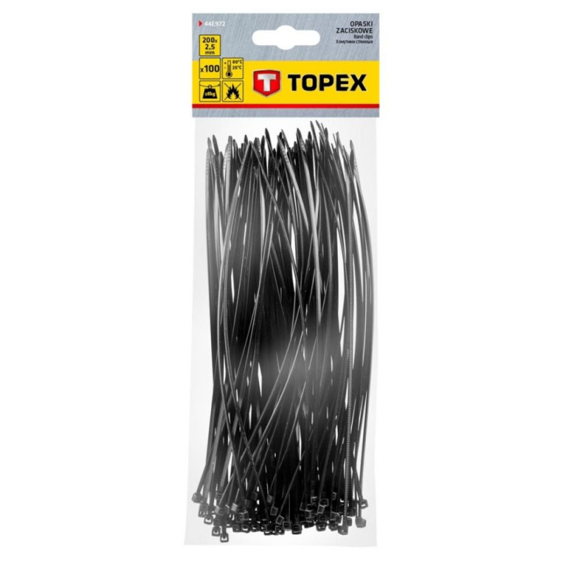 Opaski zaciskowe 2.5 x 200 mm, 100 szt., czarne (5 tk.)