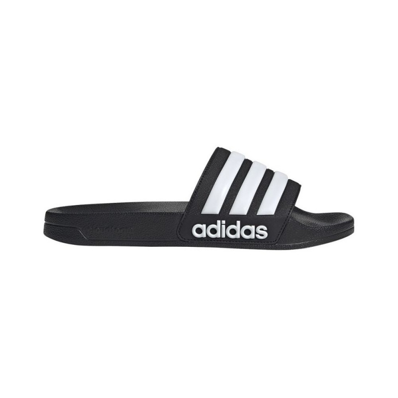 Properties: Lightweight adidas flip-flops. They have a contoured, internal Cloudfoam insole. Classic design with contrasting logo on the strap. Unisex model. Material: synthetic material Color: blackWarning: Last items in stock!