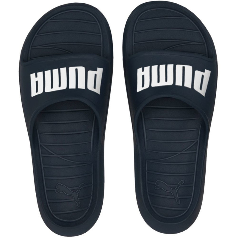 Klapki marki Puma to model o uniwersalnym zastosowaniu. Wyprofilowana konstrukcja z pianką EVA. Podeszwa zewnętrzna z specjalnymi wyżłobieniami. Design z kontrastowym logo.