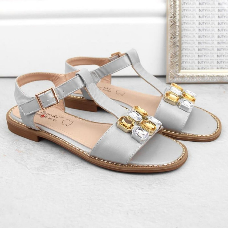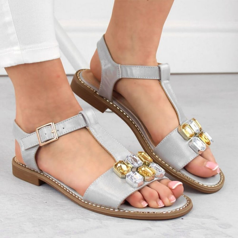 Comfortable sandals with zircons S.Barski W OLI261B silver Properties: S.Barski brand flip-flops made for women perfect for spring and summer open design the shoes are fastened with a buckle the upper is made of eco-leather the lining is made of natProduct has been archived