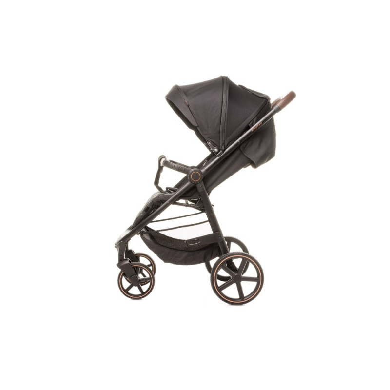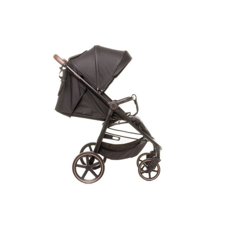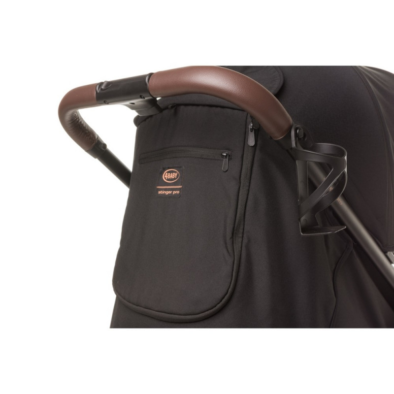 Stinger PRO is a premium version of our popular walking stroller, Can carry toddlers up to 22 kg. Stinger XXIII combines classic style and funcionality to suite every use. Quick folding system and large gel wheels with sussppension will work just fine both in urban and mild terrain. Perfect balance for all outdoor activities Huge seat is fully adjustable. Full sleeping position with reclined backrest and footrest. Additional head pillow for extra comfort. Extendable, multifunction canopy for extra protection from sun, wind and rain. Rear section of the canopy has a mosquito net layer – designed for better air circulation in hot weather. Canopy is topped with see through window so the parent can keep eyes on the baby. Stroller handle and frontbar are finished with handcrafted leather details Included foot cover – easy to keep on hand in case of a need for wind or rain protection. Cup holder for bottles and drinks and a huge basket for accesories or any storage needed.