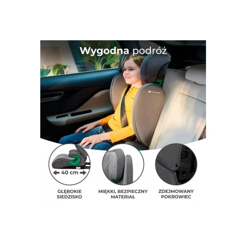 Siedzisko fotelika jest szerokie i wygodne. Wykonano je z miękkich, wysokiej jakości materiałów. Dziecku będzie wygodnie zarówno podczas krótkich przejażdżek, jak i dłuższych podróży. Pokrowiec łatwo zdejmiesz do prania - dzięki temu utrzymasz fotelik w czystości przez lata.