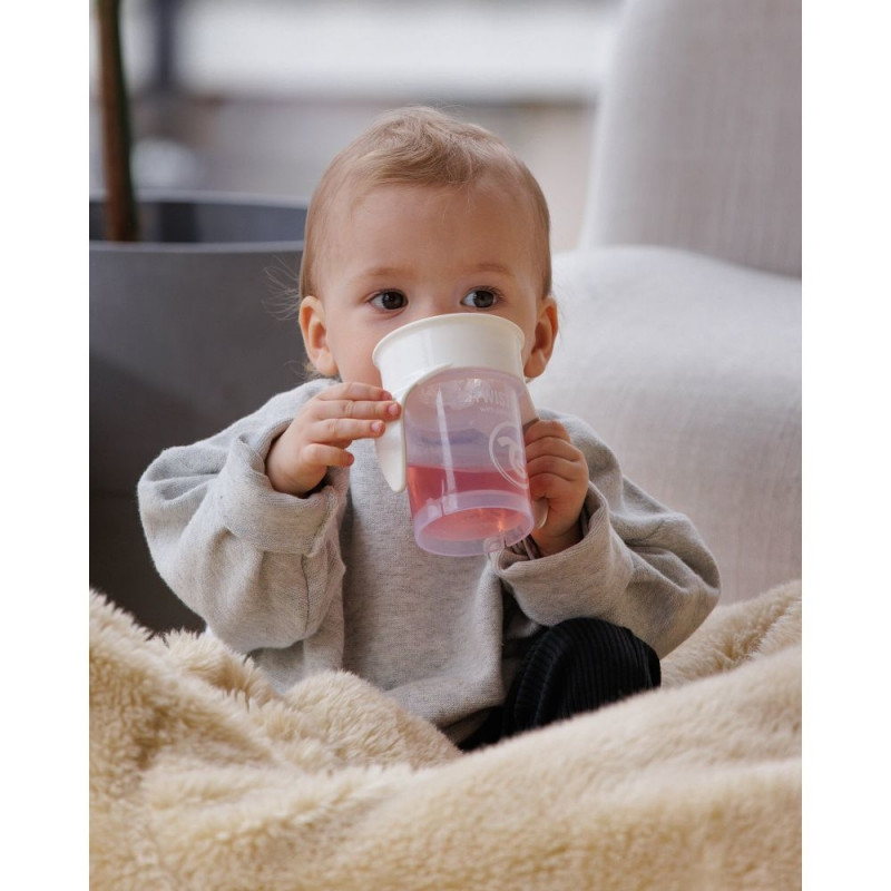 Twistshake's innovative Spill-free 360 Cup makes it easier for your child to drink independently. The 360-edge allows drinking from all around, just like a regular drinking glass. It is also spill-proof and has two easy-to-grip handles. The cup holdsWarning: Last items in stock!