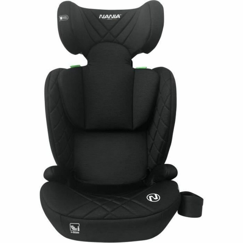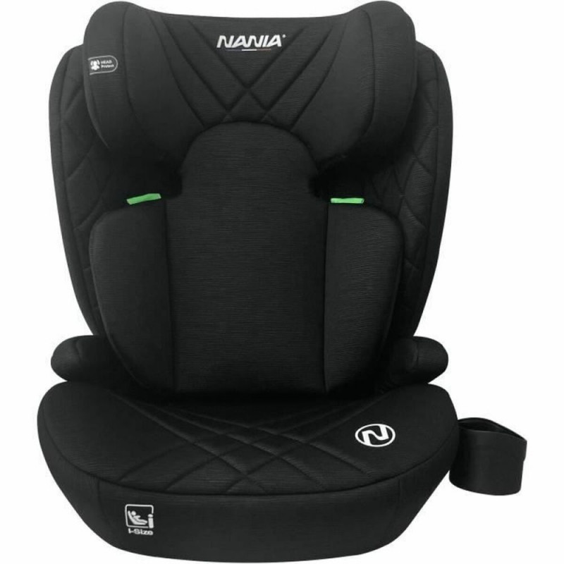 The SIENNA car seat by Nania is designed to provide a safe and practical solution for transporting children in Group 2/3, suitable for those weighing approximately between 15 and 36 kg, ideally fitting size I. This car seat stands out for its sturdy structure and its attachment system using the vehicle’s seat belt, ensuring proper restraint and protection on every trip. Its black design offers a sober and versatile look that matches most car interiors, facilitating integration without compromising comfort. Made from durable materials, the SIENNA allows for easy and secure installation, complying with current child seat regulations, giving caregivers peace of mind during travel. This model is suitable for children who are already familiar with the seat belt restraint system, easing the transition from harnessed seats to a more conventional but safety-adapted system. In short, the SIENNA car seat by Nania is an effective and functional option for child transport in intermediate stages, combining protection, compatibility, and a neutral design for daily use.