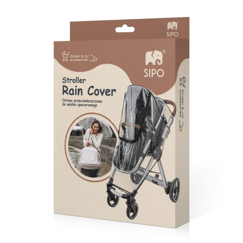 The SIPO rain cover is intended for adult use only. It is not a toy and should not be handled by children or left within their reach unsupervised. Meant exclusively for outdoor use during cold and rainy weather. Do not use indoors or during intense sunlight, as it may cause the child to overheat.