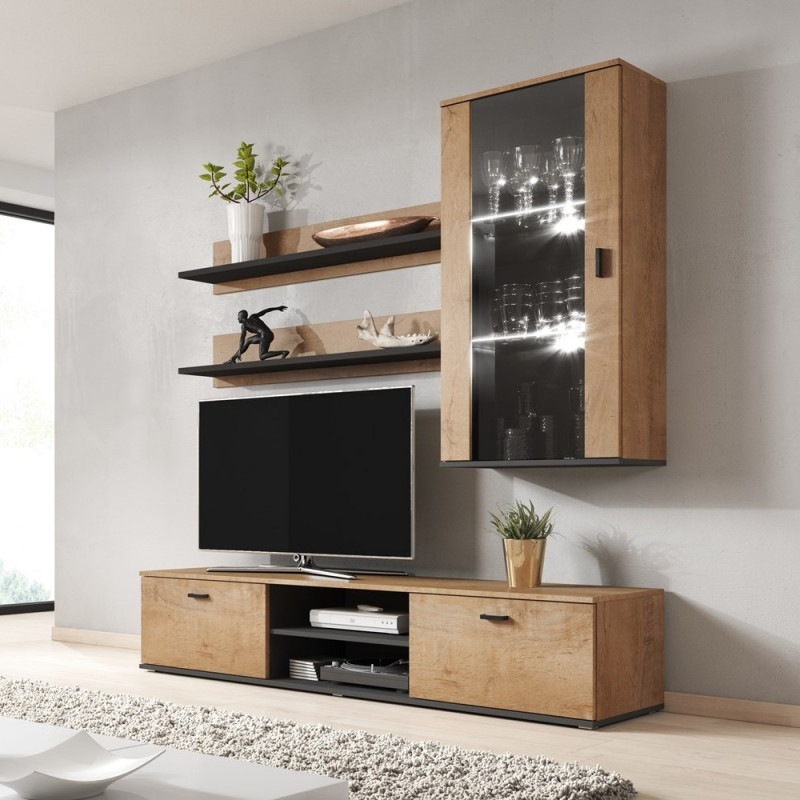 Cama SOHO 5 set (RTV180 cabinet + wall unit + shelves) oak lefkas + black