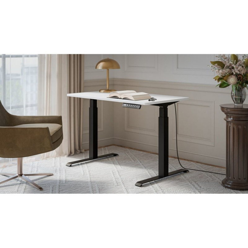 Desk with electric height adjustment MOON 121x67x72-120 Black/White