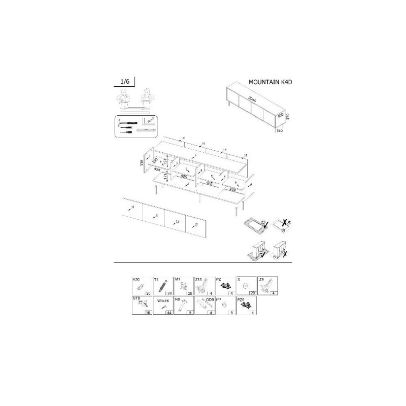 | Safety warning | Be careful during assembly not to damage the edges or surfaces. Ensure that the chest of drawers is stable and, if necessary, secure it to the wall to prevent it from tipping over. Do not overload the shelves or drawers to prevent damage. |